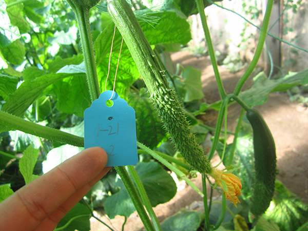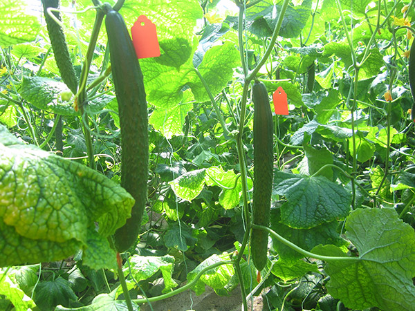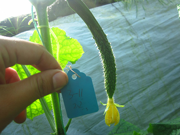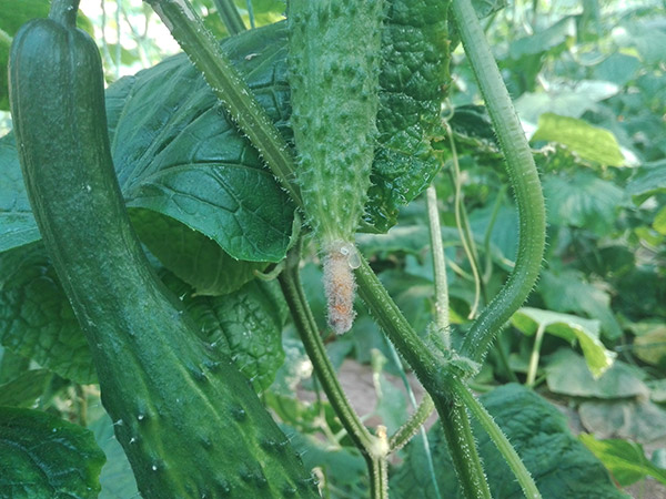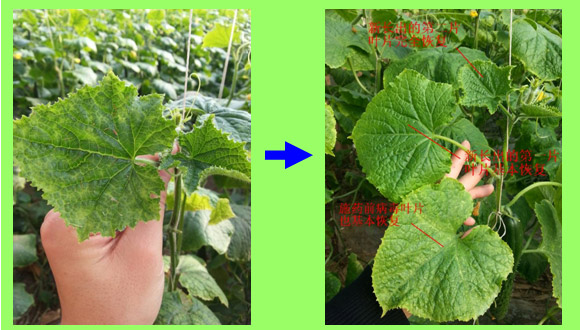 小抗在拜訪有機基地時發(fā)現(xiàn),有些棚內(nèi)的黃瓜出現(xiàn)把特別長的現(xiàn)象,是缺水缺肥所致,有機生產(chǎn)中通常會出現(xiàn)營養(yǎng)缺乏的現(xiàn)象,近期氣溫回升,植株生長較快,營養(yǎng)需求較大,不僅要多補充葉面肥,還要增加生長調(diào)節(jié)劑的施用,使用太抗?幾丁聚糖可有效減輕這種生理性病癥。