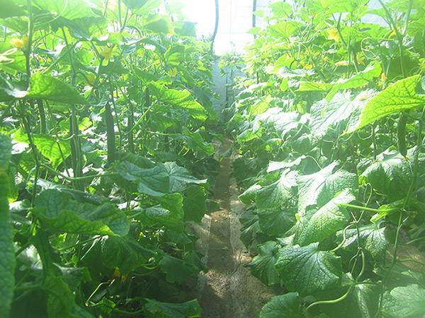 黃瓜苗定植澆定植水時進行土蘇TM灌施,疏松土壤,促進緩苗,使用方法為:稀釋土蘇TM500~800倍,調(diào)整出藥速度,畝用量為1L。