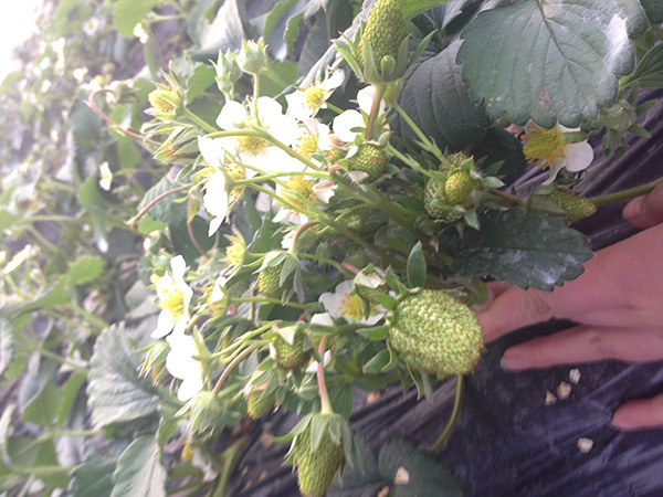 1月5日拍攝,用藥1次后,草莓長勢明顯變好,掛果也多了